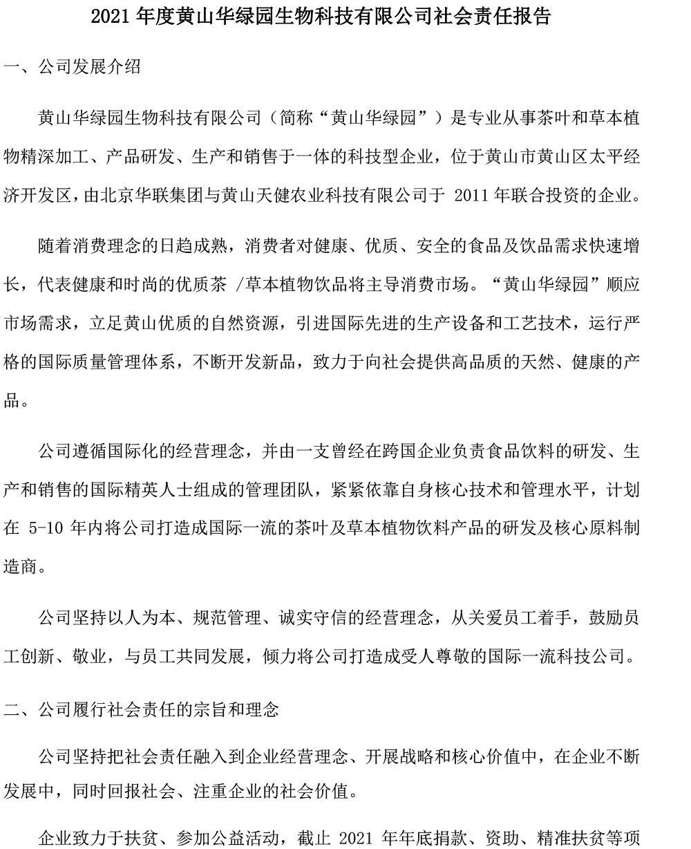 2021年度黃山華綠園生物科技有限公司社會責(zé)任報(bào)告
